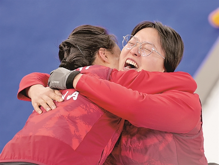 中国队与韩国队同为世界劲旅,这场决赛跌宕起伏、反转频现。王蒙/杨金桥开局便占据主动,前六局过后以7比3领先。第七局,韩国组合白惠珍/李永锡单局拿到3分,又在第八局成功偷分,将比分追至7比7平。加赛局,中国组合顶住压力,发挥后手优势,将两壶摆放在大本营有利位置。韩国队最后一投出现失误,中国队还剩一壶未投,以9比7提前锁定胜局。