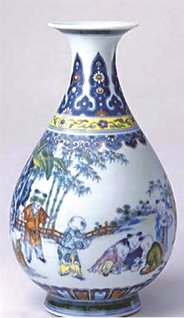 清乾隆时期的斗彩婴戏图玉壶春瓶 故宫博物院藏